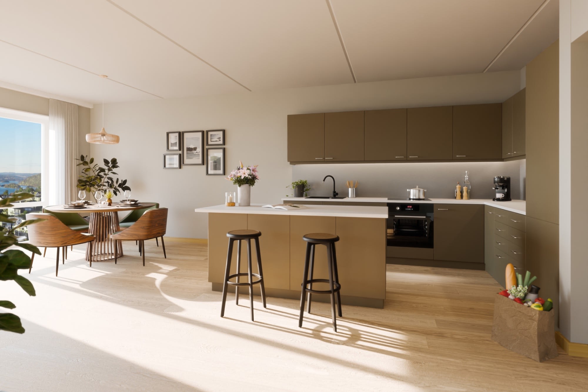 Nytt, romslig og spektakulært. Lekre løsninger og spennende vinkler. En bolig for dem som fortsatt ønsker å bo standsmessig, men vil frigjøre tid til de hyggelige tingene.