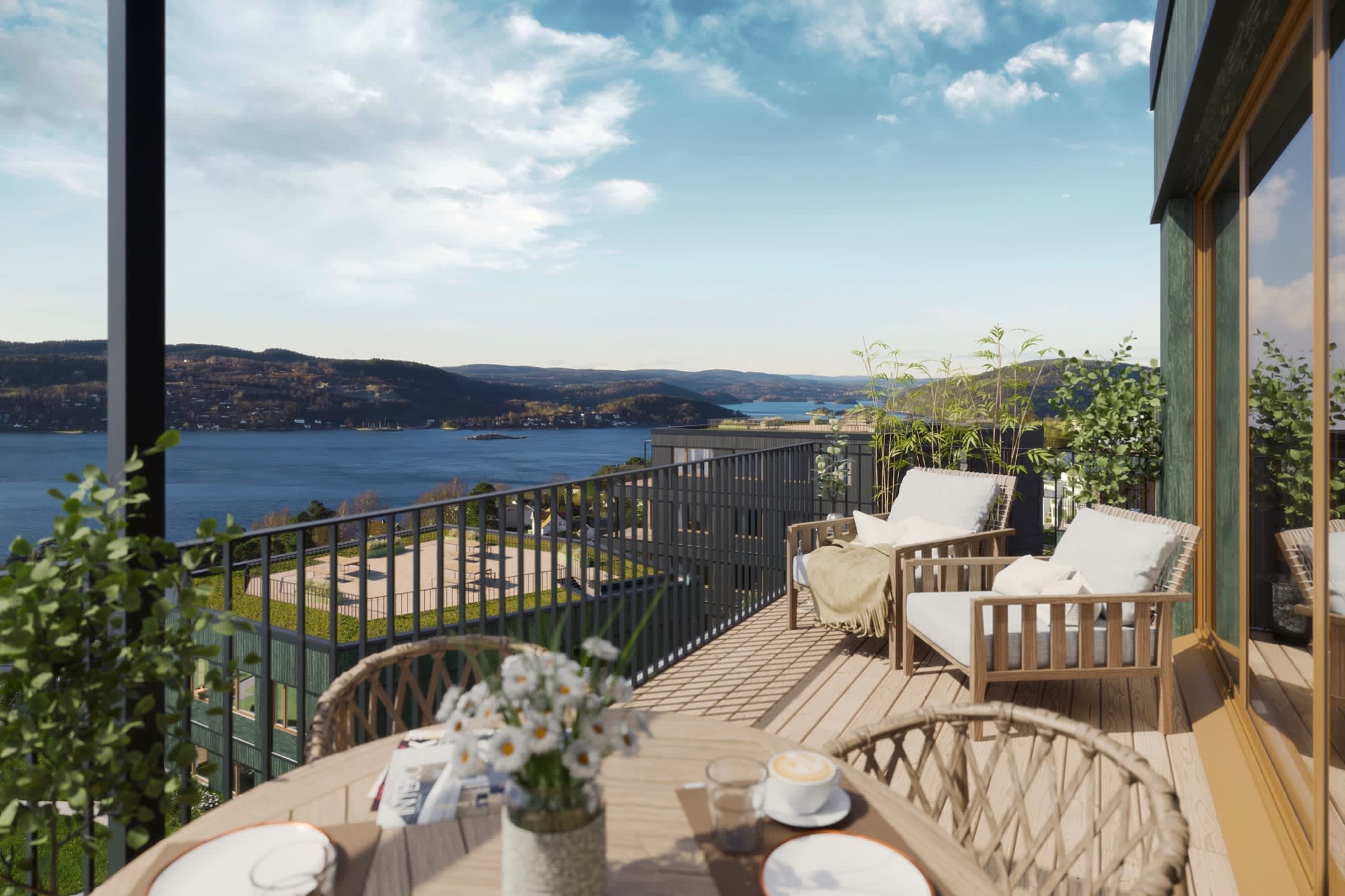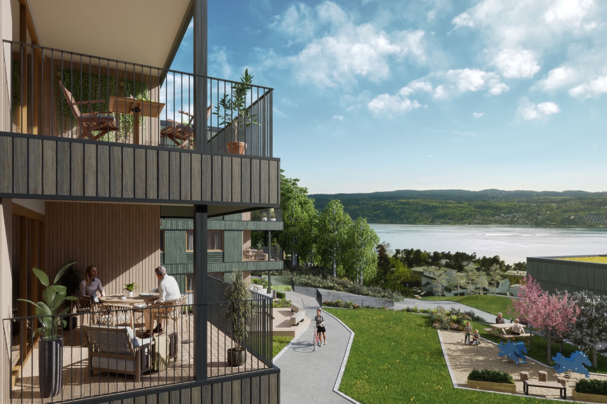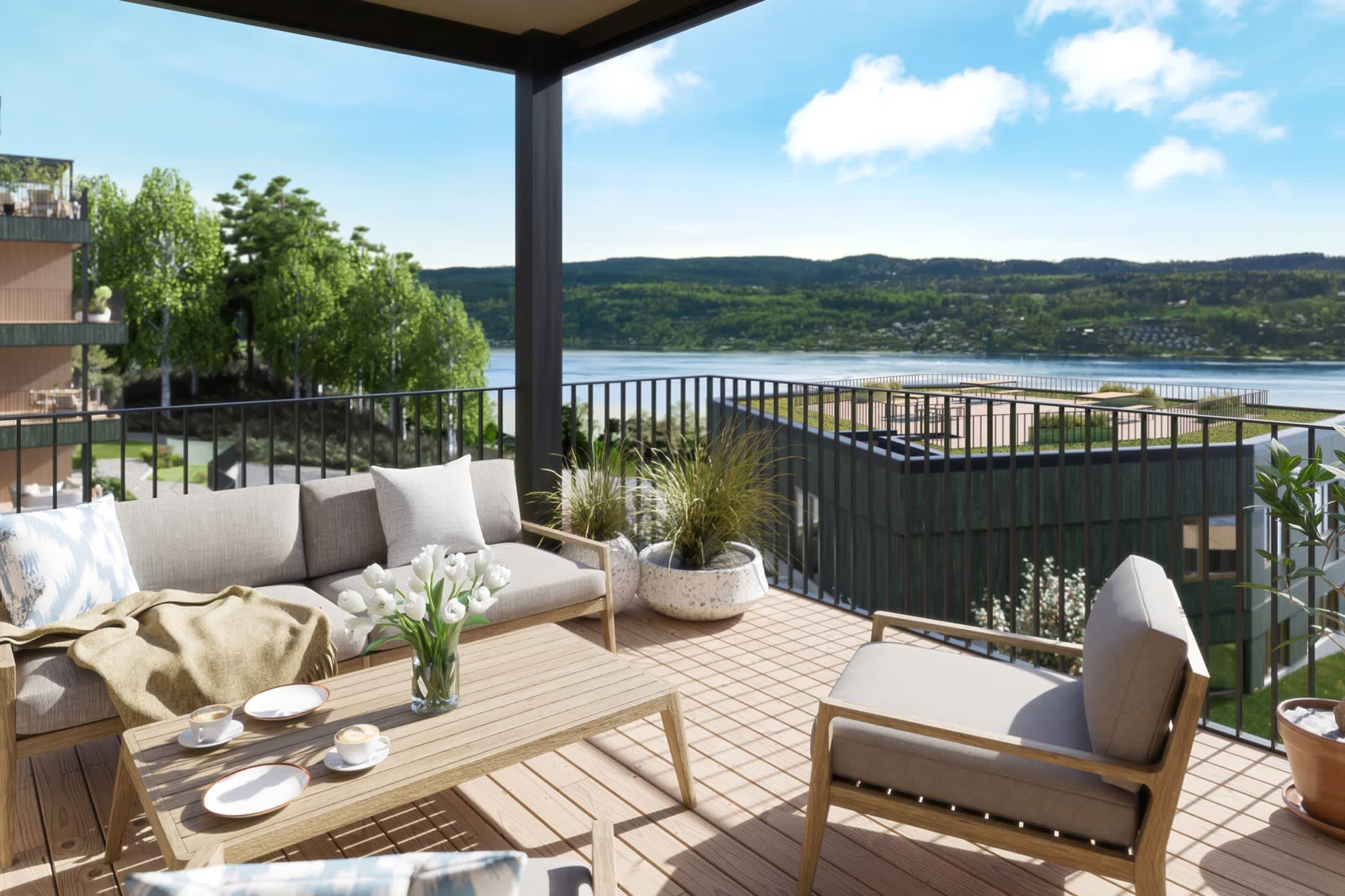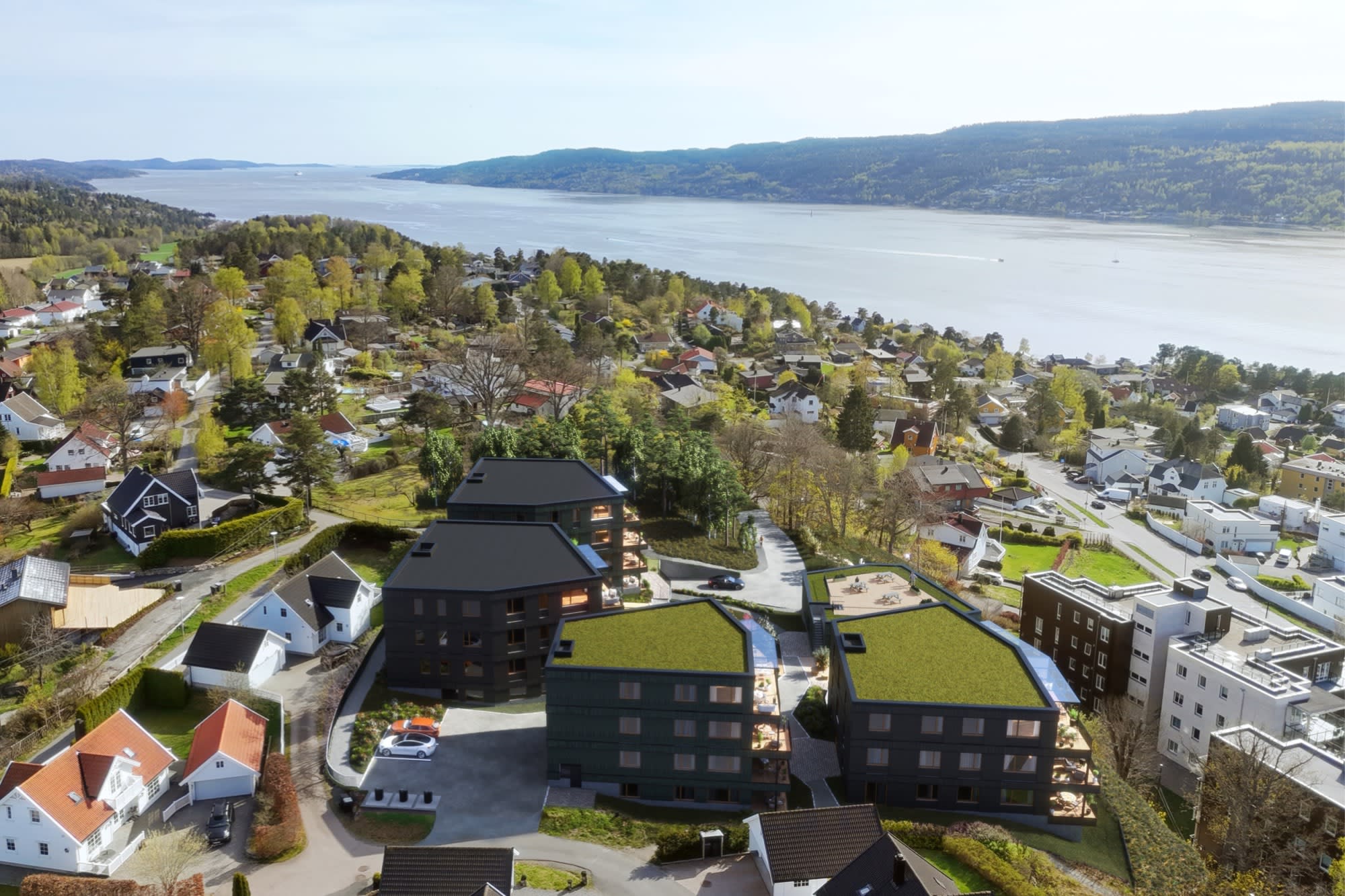 Boligene ligger høyt og fritt, og mange av leilighetene får utsikt mot innseglingen til Drøbaksundet og det vakre Hurumlandet. Romslige, sydvestvendte balkonger lover gode soldager og veien er kort om man vil rusle en tur i marka eller ta jolla utpå.